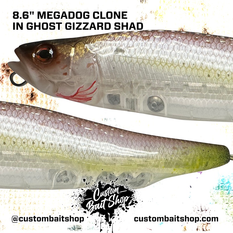 Be the first to review “9 Megadog X Clone|Gizzard Shad|Chrome Threadfin|Emerald Herring|Blue Herring|Pearl|Golden Shiner|Blue Gill|Crappie|Perch|Custom Paint Job!|No Effects|Metal Foil Base (+ $25.00)|Holographic Foil Base (+ $25.00)|Bleeding Gills|Dirty Belly|Bleeding Tail” Cancel reply