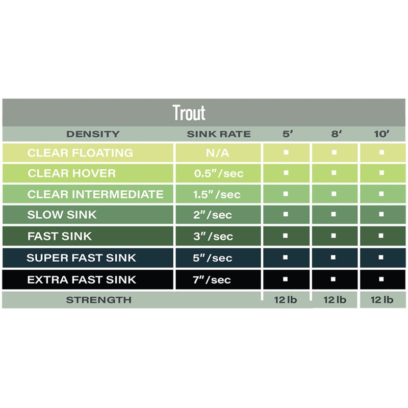 Armed with this diverse selection of Polyleaders, there’s literally no angling style or tactic you won’t be fully equipped for. The Airflo 8ft Trout Polyleaders come in seven different densities that let you fish any part of the water column, in every type of water.