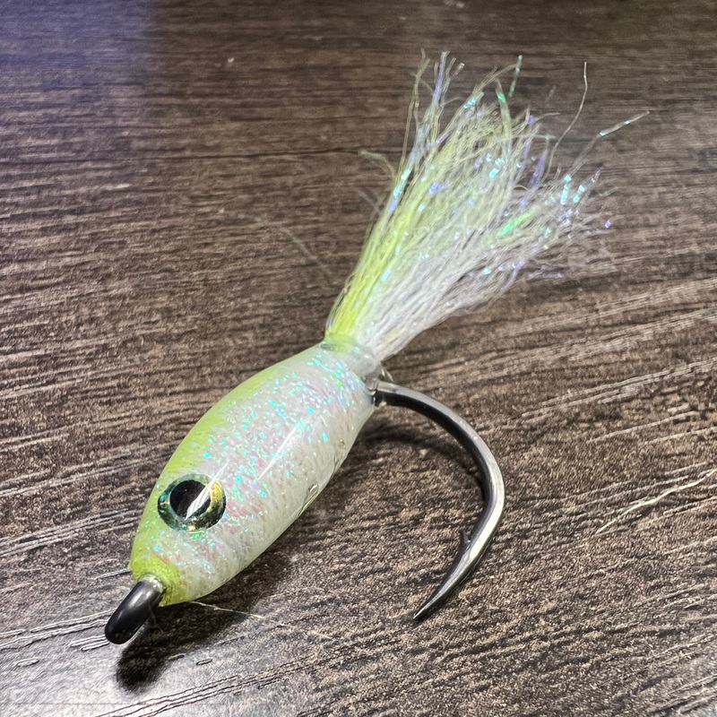 The most effective new Albie fly we’ve seen in years. Designed with a profile to entice even the pickiest fish, the Albie Bean has the perfect size as well as an abundance of flash and swimming motion to attract aggressive predators. A practically indestructible construction makes this a “one fly” you can leave on all fall.