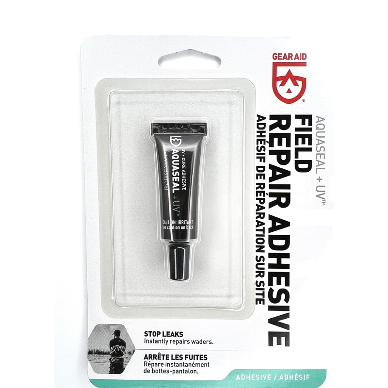 Aquaseal UV dries in seconds, very good to have on multi day trips. Comes in a .25oz tube.