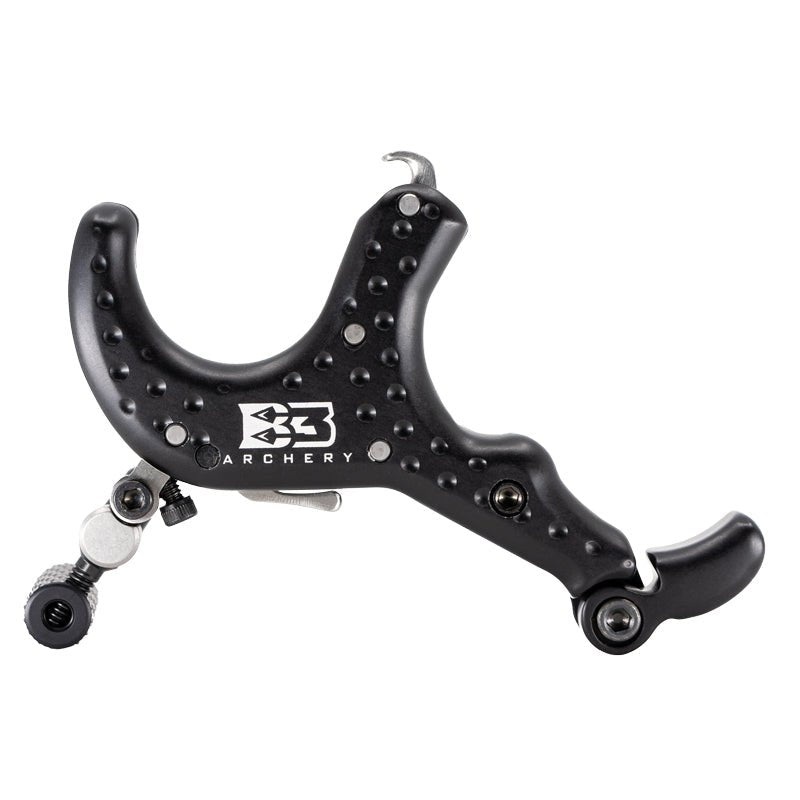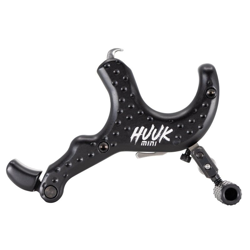 The Huuk is an open hook multi-sear thumb button release. The handle is a fully radiused two-piece patented system which allows you to rotate the finger attachments for a custom fit. Other features include an optional wrist strap connection, fully adjustable thumb post position, as well as travel and tension adjustments. The Huuks design includes a base system that holds the sears in place, producing the best performing open hook thumb trigger. Watch the video below for more information.