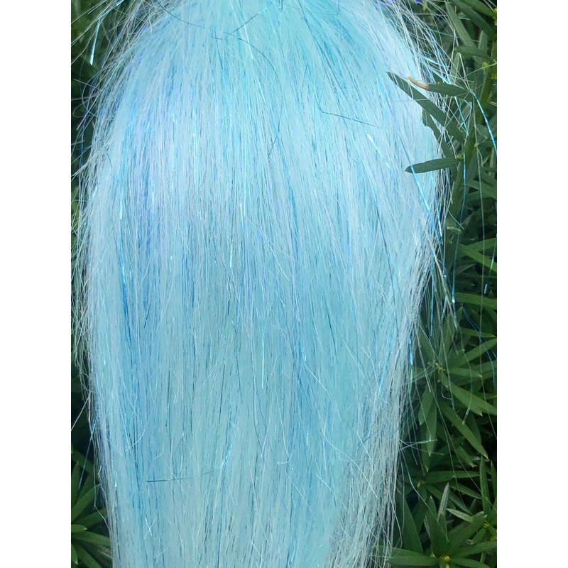 5″-7″ Tapered synthetic hairColor: Baby Blue Sparkle Blue and white Squimpish Hair with Blue Flash