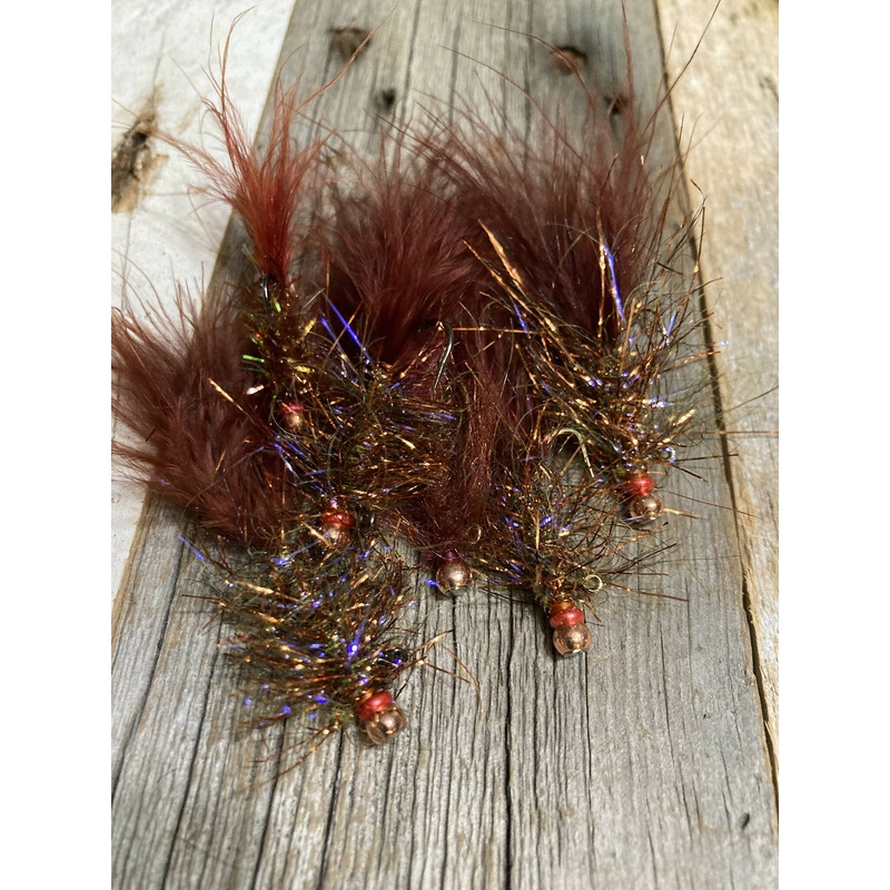 Set of 6 Balanced Leech flies. For size #6 hooks, uses Daichi 4640 long shank hooks. For size #4 hooks, uses MFC 7322 3XL black nickel hooks. Both hooks brands are extremely strong and sharp. Flies are tied in strongly to secure the tungsten bead extension. Includes Firehole outdoors bug band color. Material uses UV materials in the dubbing. This is an extremely successful fly created by Phil Rowley and was originated from the Pyramid Lake fishery with phenomenal success.The flies can be used effectively in both lakes and rivers where leech patterns are utilized and effective for trout, smallies, steelhead and other large predatory fish.6 flies per order please.