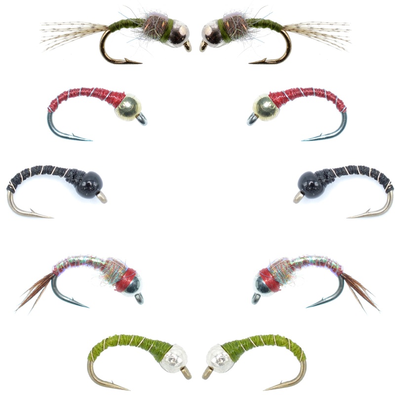 Basics Collection – Essential Bead Head Midge Nymph Assortment – 10 Wet Flies – 5 Patterns – Hook Sizes 14, 16, 18