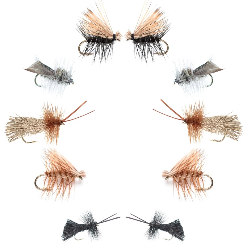 • 10 hand tied dry flies fishing fly assortment – Hook Sizes 12, 14 and 16, 18