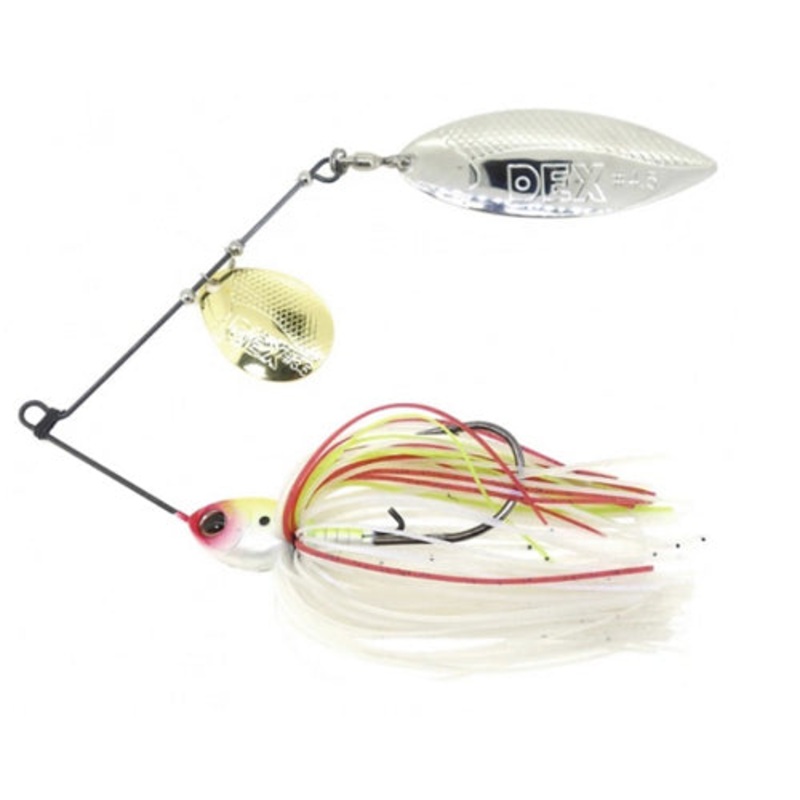 Dex spinnerbait r ett premiumbete fr finessfiske, tillverkat av kvalitetskomponenter. Skedarna av bde colorado- och willow-typ r monterade p en hllbar titantrd. Tack vare sitt massiva tungstenshuvud har betet en extremt lg tyngdpunkt som skapar stabilitet i vattnet. En handknuten kjol och kemvssade krokar ger den viktiga avslutningen p betet.