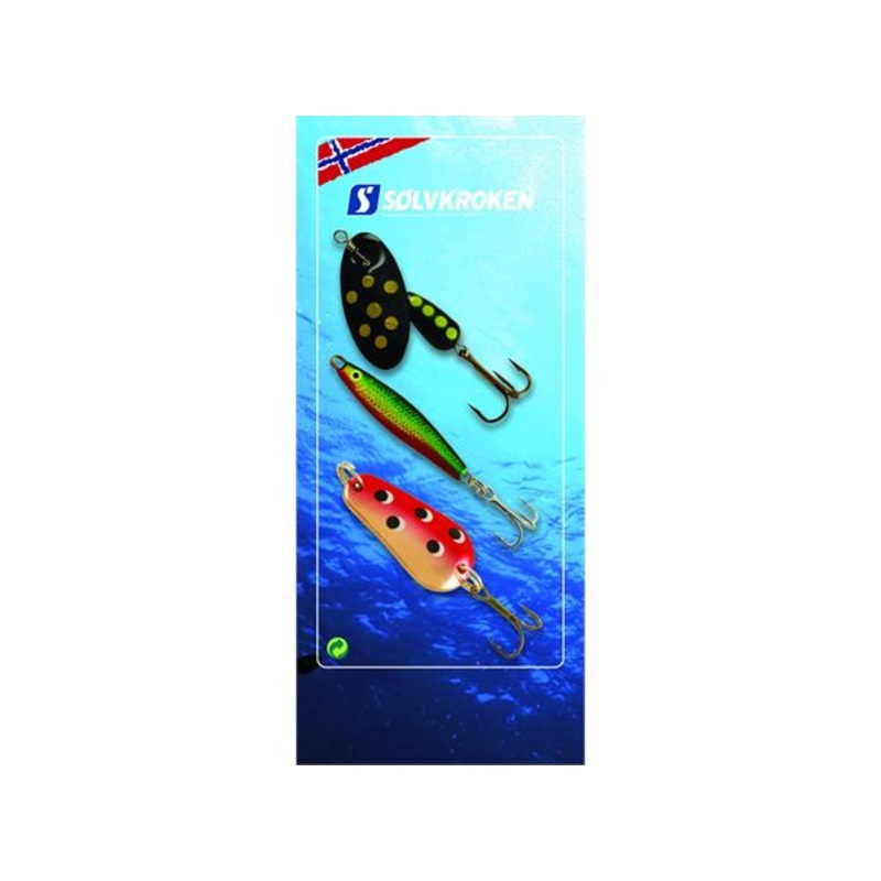 Slvkroken har valt ut tre av sina bsta stvattensdrag till dig! Finnmarksvidda erbjuder fantastiska fiskevatten och lvar – och inte minst fantastiska naturupplevelser. Spesial Spinner (9 g), Jensen Mini-Pirken (10 g) och Spesial Classic (10 g) r speciellt sammansatta fr fiske hr.