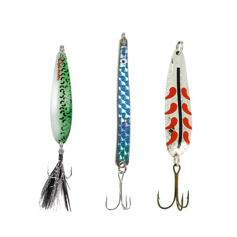 Slvkroken har valt ut tre av sina bsta havsringsdrag till dig! Settet bestr av Morild Seatrout (13 g), Jensen Tobis (12 g) och Salamander Allround (16 g). Frgkombinationerna r sammansatta fr att passa de flesta vder- och fiskefrhllanden.