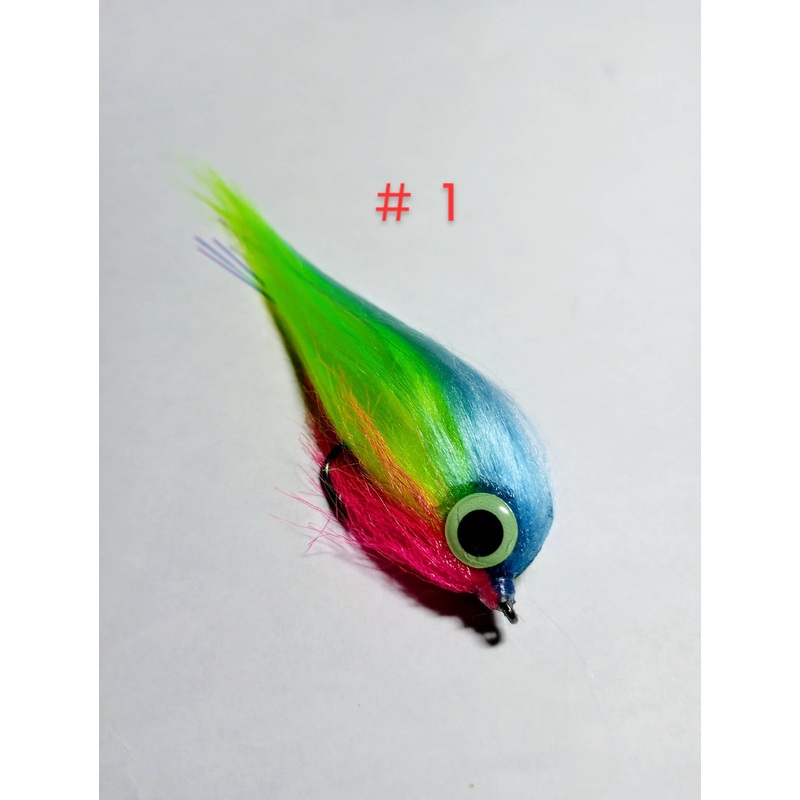 These Big Eye Polar Baitfish flies have glow in the dark eyes and just a little flash tied inside the fly. This creates a subtle inner glow that gets a predators attention.