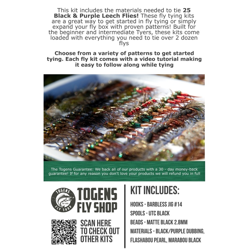 Tie one of the most effective streamer patterns out therethe Black & Purple Leech. Known for its bold profile and fish-attracting movement, this fly is a proven winner in rivers and lakes. Whether youre new to fly tying or looking to stock up on trusted patterns, this kit makes it easy.