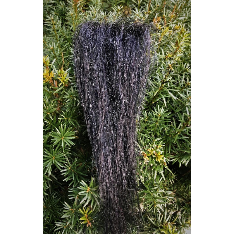 5″-7″ Tapered synthetic hairColor: Black SparkleSquimpish Hair is a synthetic fly tying material best described as a synthetic cross of bucktail and polar bear. The fibers come on a patch like a rug and are generally 6″-12″ with “underfur” and “guard hair”. Listed taper is length of working material, variable density on patches.All blend-able and stack-able. Durable and trim-able. Swims extremely well and sheds water when tied sparsely. Blends well with other feathers flash’s and furs.