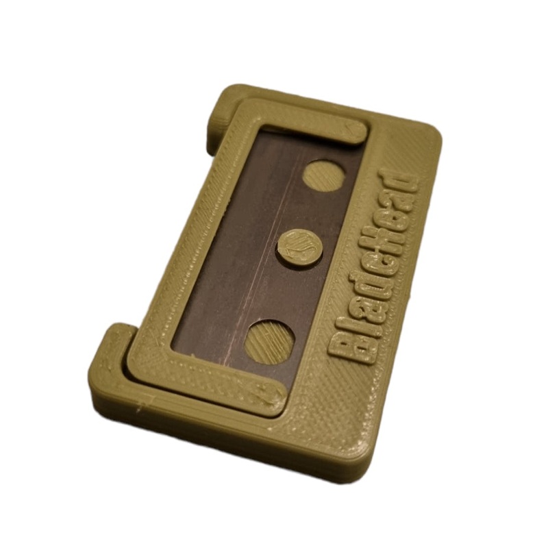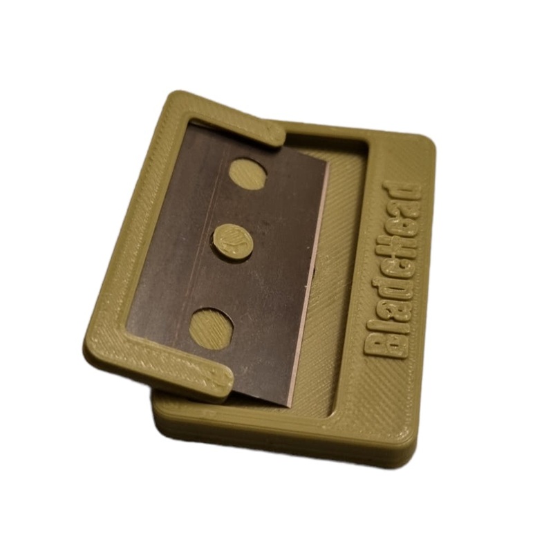 A sharp blade for a variety of applications, with a case allowing safe storage on the fly tying desk or when travelling.