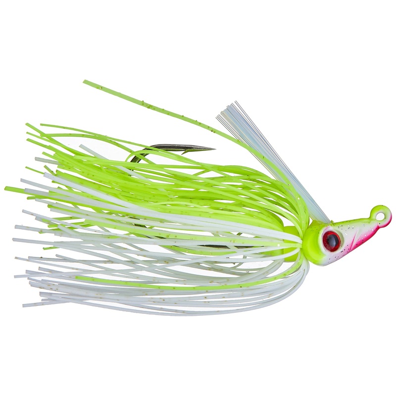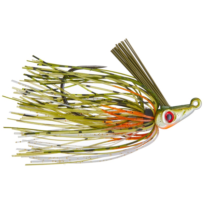 Built for covering water and finding bass, the Booyah Mobster Swimjig is an all-terrain swimjig that is perfect for all types of shallow water cover. Featuring a custom designed head shape, vertical line-tie, and optimally angled weedguard, its able to weave through grass, brush, laydowns, and dock pilings where big bass often hide and wait to ambush prey. It is also armed with a stout black nickel hook for rock solid hooksets and a dual wire keeper system that securely holds all types of trailers firmly in place. Finished with a high quality silicone skirt and offered in pro-selected colors, the Booyah Mobster Swimjig is the only swim jig you need in your tackle box.