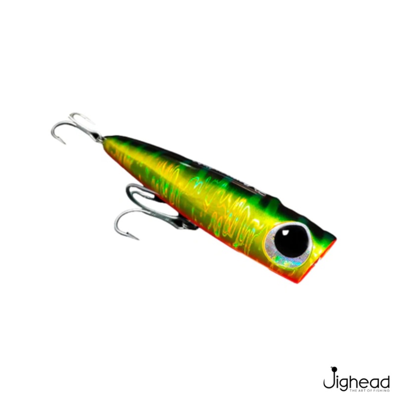 The Barracudinha is a smaller version of the Barracuda popper, however, it has an angle on the front of the mouth allowing faster retrieve and leaving a bubbles trail on the surface or swimming in Z (Walk the dog). Carefully designed come weighted and balanced for long cast, build-in rating, and allBarracudinha are fitted with HD split rings and hooks.This lure is very effective on Peacock Bass, Snakehead, and jungle perch in freshwater and also Barra, Jack, Grouper, small GT, Queedfish, etc in saltwater.