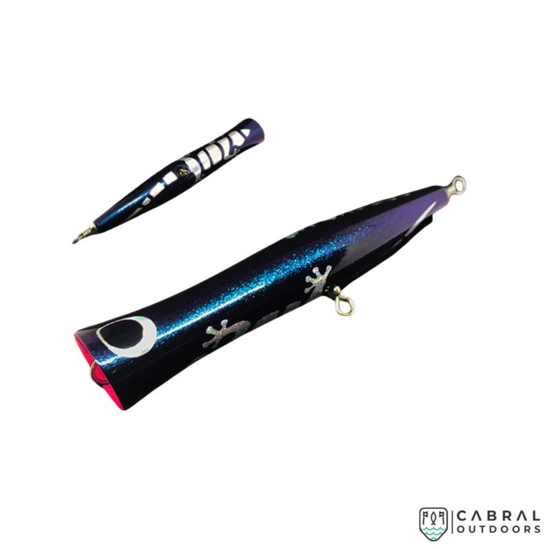 The Long Dog is a popper made of high qualitywood for saltwater fishing. The floating ability and design gove the popper a fast action while still being explosive. Is constructed with 1.8mm through wire, very resistant swivel in the belly and an excellent casting weight, makes it perfect for everything from tuna and mackerel to GT’s, coral trout and kingfish.