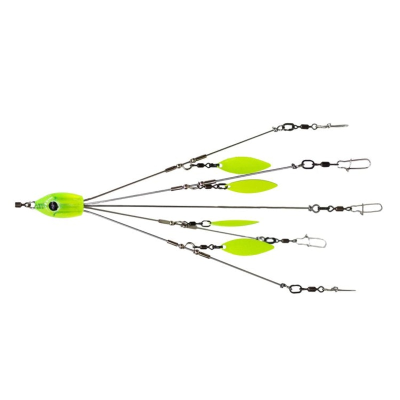 Finesse (smaller): Overall length from nose swivel to end of center wire 5 1/4 inches and outside wires are 4 1/2 inches.