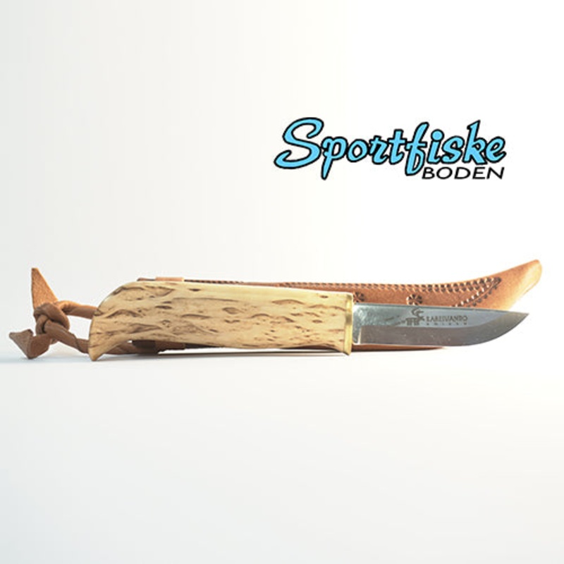 Haren r en kombo-kniv som r populr bde inom jakten och fisket – en allround brukskniv med masurbjrk i skaftet och mssingsbeslag och ett blad i rostfritt stl 75 x 18 mm.