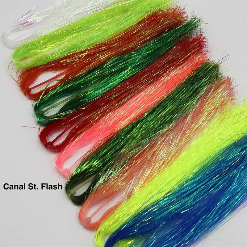 Turn up the lights, turn up the bite Canal St. Flash brings the Mardi Gras straight to your vise. Named after the most electric street in New Orleans, this premium flashabou-style material is dripping with vibrant color and Southern swagger. Whether youre dressing up baitfish streamers or giving your nymphs and dry flies a little extra voodoo, this flash delivers.