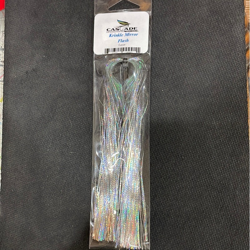 Mirror Flash with a slight crimp, that mimics falling scales. 8-inch hank and 800 strands. A little bit goes a long way.