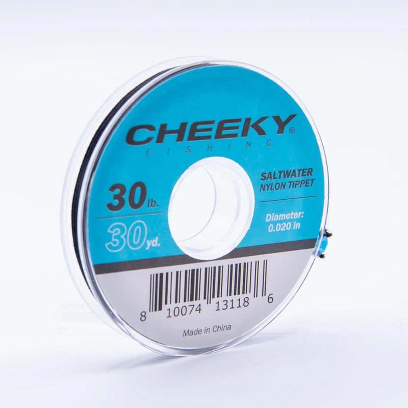 Every angler needs a tippet they can trust when it matters most. Enter Cheeky Fishings PremiumSaltwater Tippet. Constructed of the highest quality abrasion resistantnylon, our tippet is built to last and keep you on the water longer. Choose from 10lb, 12lb, 16lb, 20lb and 30lb spools.
