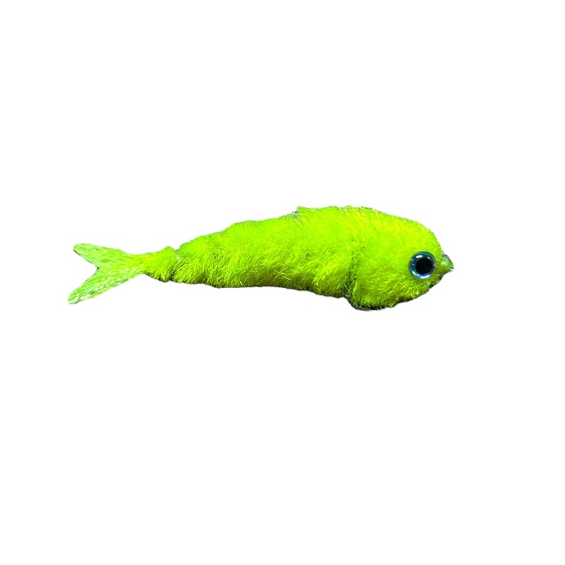 Chockletts Micro Changer is a small highly articulated baitfish pattern less than 2 inches long, with 7 articulated segments tied with the new Chockletts Articulated Micro-Spine.