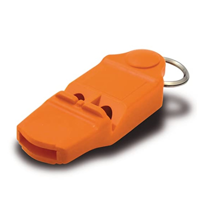 This Safety Whistle is a pealess whistle which works even when wet and won’t freeze or clog.