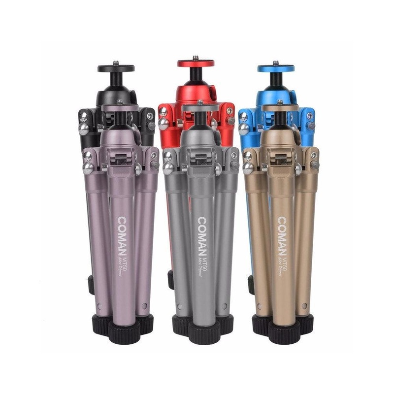 Coman MT50 er et solid og hendig bordstativ/ministativ i aluminium med valgfrie farger