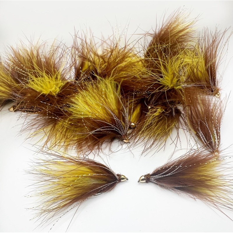 Cone Head Brown/Yellow SoftHackle Streamer is one of our most popular flies for good reason. It’s tied with premium marabou.