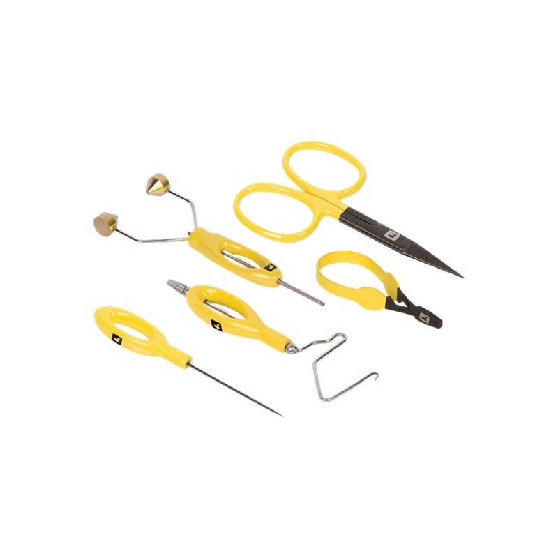 Packaged in a heavy-duty travel case and featuring the Ergo All-Purpose Scissors, Ergo All Purpose Bobbin, Ergo Bodkin, Ergo Whip Finisher, and Ergo Hackle Plier this is an excellent choice as a gift for the first-time tyer, or the long-time tyer who wants to trick out his or her bench with something new.