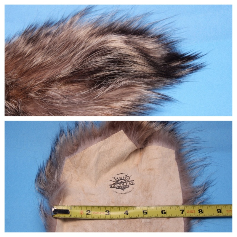 The guard hairs on coyote fur are average between 2.5 -3 inches long on the back, and up 5 inches long in a patch between the shoulders known as the mane or hackles. These coarser bristles around the head are excellent for spinning in a dubbing loop and then wrapping to obtain a thick, full body. I use the shorter hair for the wing on bonefish flies, like Squimp, Gotchas or Charlies. The longer guard hairs closer to the neck and back are often tipped black and are excellent for baby tarpon flies and other baitfish streamers.