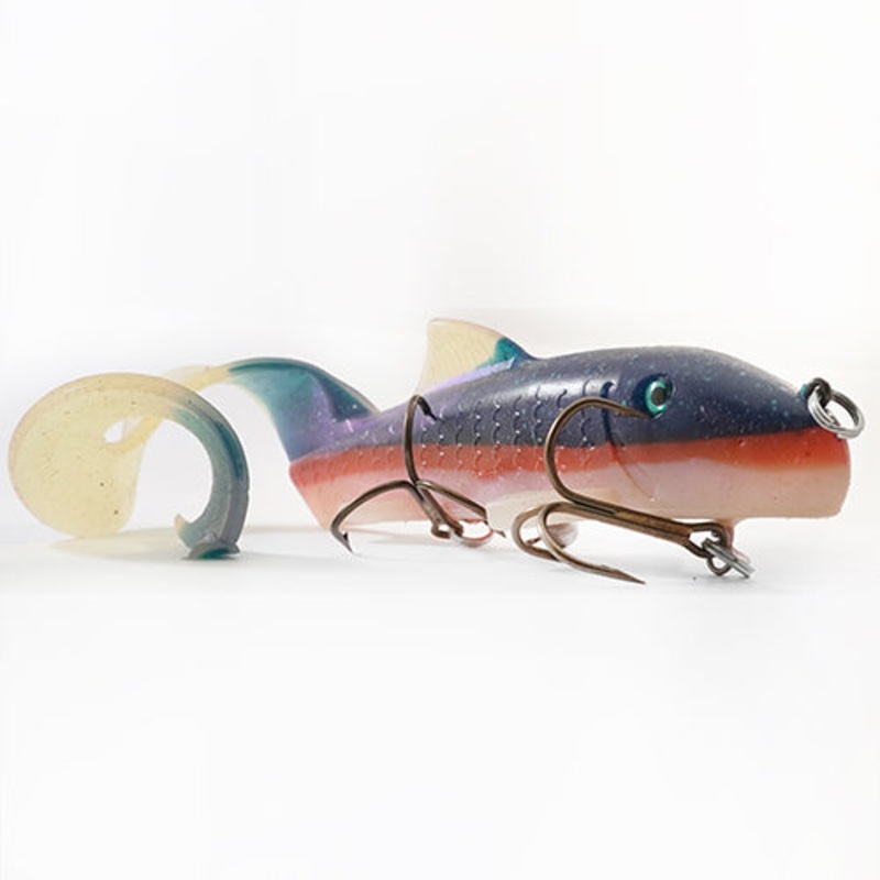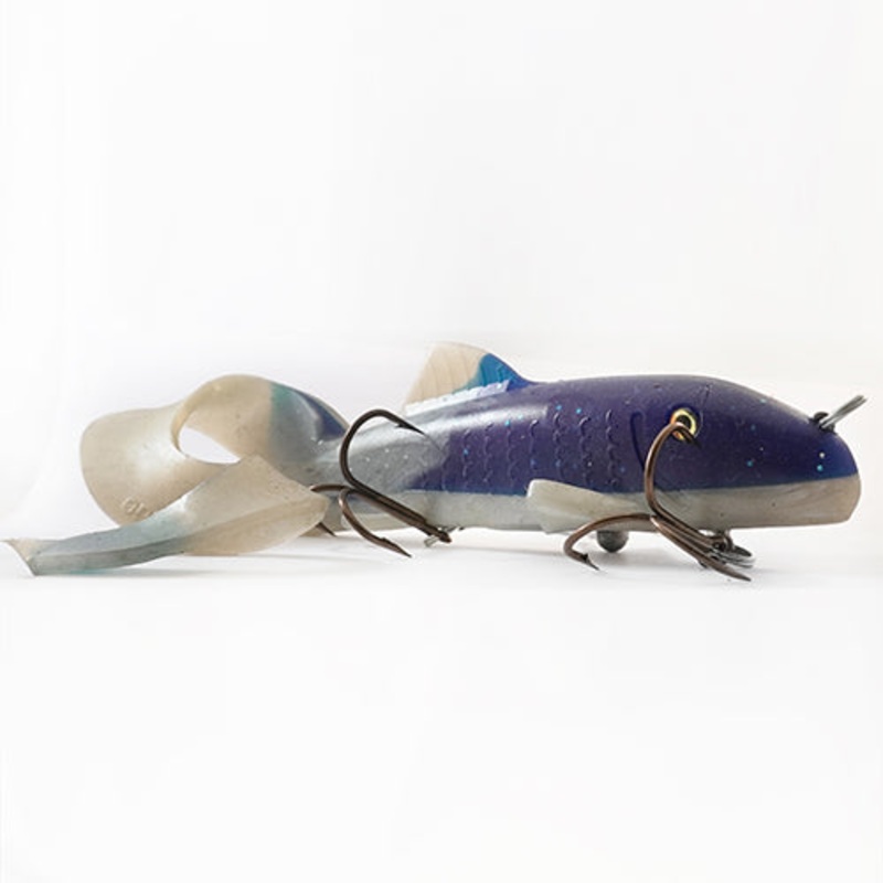 Ett klassiskt handgjort gummibete frn USA och Muskie-fisket med en hrligt vaggande gng samtidigt som den frfriska tailen ringlar sig fram i vattnet.