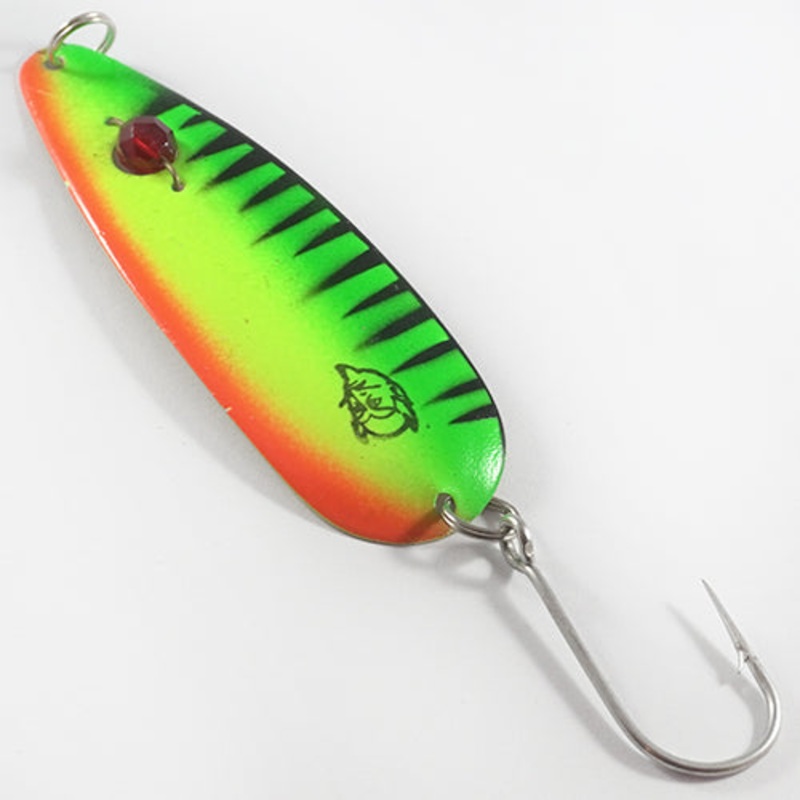 En klassisk trollingsked av Daredevil. Evil Eye, med sin rda prla lockar mnga fiskar till hugg. Mjuk metall i skeden fr en “fluttrande” rrelse som f skedar har. Made in America.