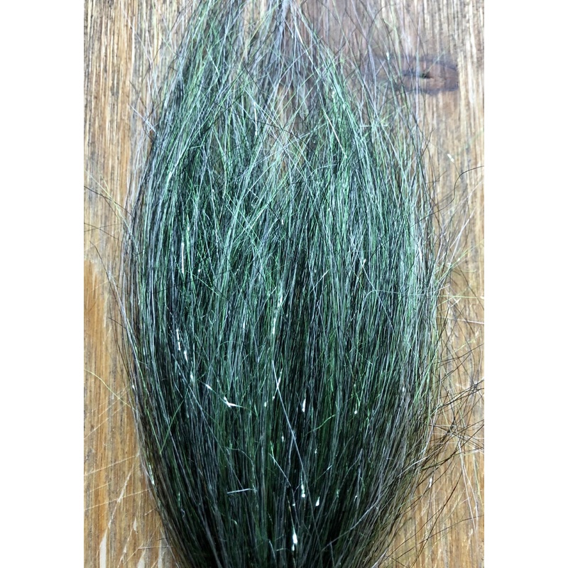 Dark Green Sparkle- Blend of Green, Black and White Squimpish hair with hints of Green flash Super Premium blend of Squimpish Hair with traces of flash and natural materials. All blends are hand made in small batches and colors vary slightly from pack to pack.