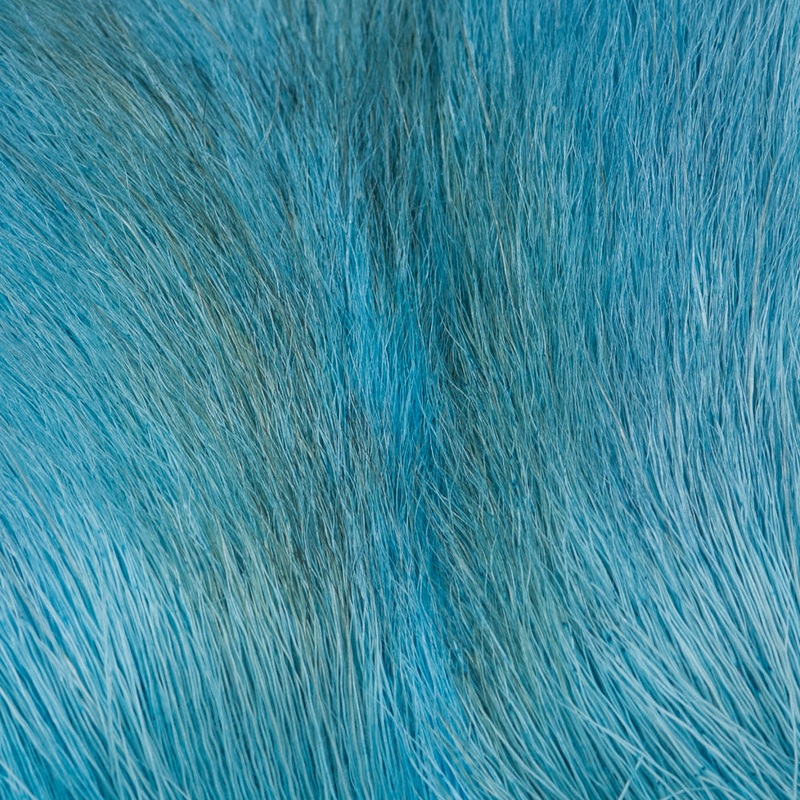 A relatively thick, hollow deer hair that flares and spins well and floats high. If you’re tying deer hair bugs this is the stuff you most likely will want to use. Available in a veritable variety of very vibrant colors. Dyed over white.