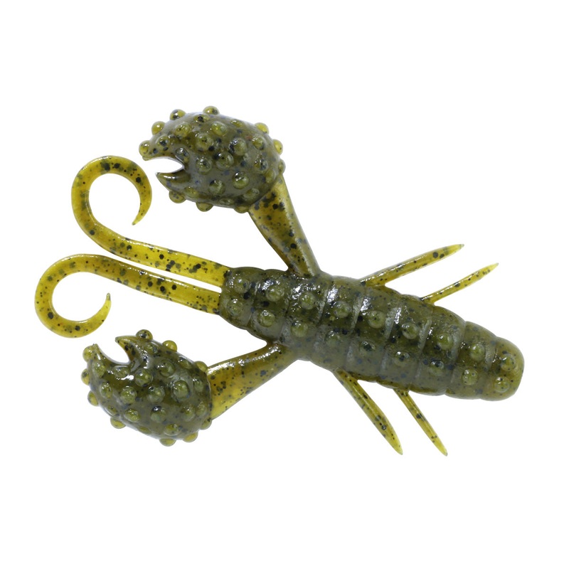 The large claw of the Beckon Craw seems oversized compared to the compact body. This was by design, as it generates extra vibration as soon it hits the water. During the fall, it has a strong vibration from the giant claw, followed by the smaller vibrations from the legs of the bait, and the antennae section adds a curling action.