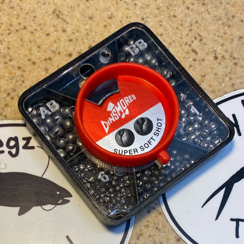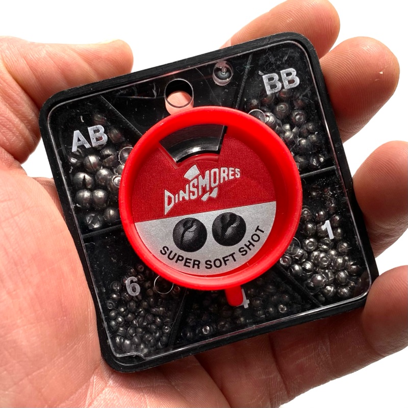 Dinsmore 5 Shot Soft Lead, round soft lead shot in a 5 compartment dispenser. Easy-On, Easy-Off! Five Sizes include #AB,#BB,#01,#04,#06.