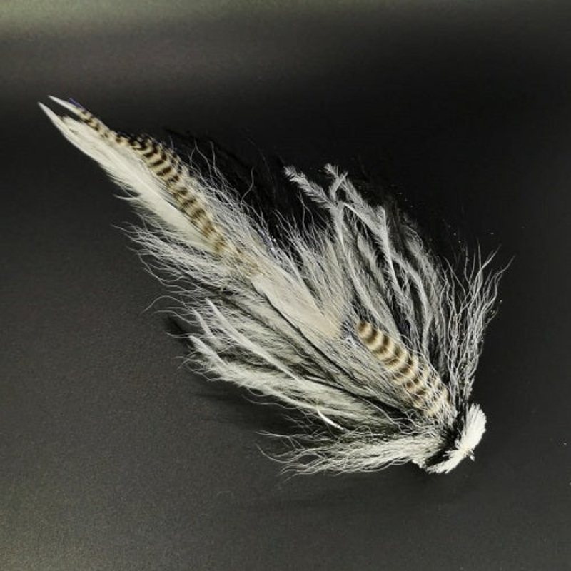 The Model T is a custom variation of Bohen’s Double Buford, with characteristics from Chocklett’s T-Bone and Popovics Bulkhead. Tied on a 5/0 Gamakatsu B10S hook with a slight keel on the bend, followed by a 4/0 Ahrex PR320. The connecting is made with a stainless steel shank to ensure durability, reduce fowling and keep the hook inline.
