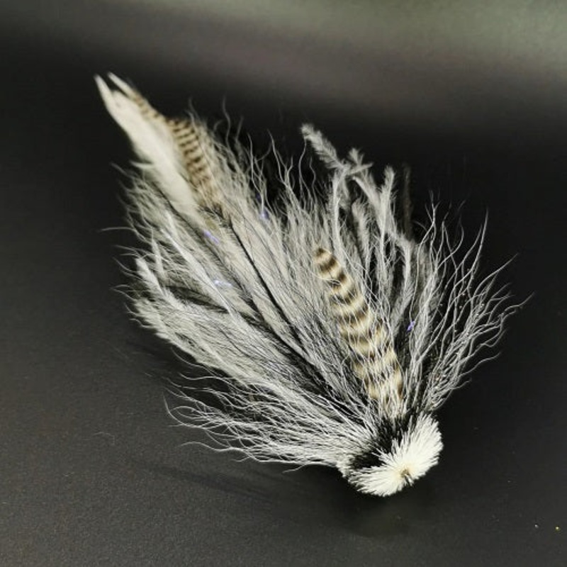 Besides a little extra dressing compared to a traditional Buford style fly. The Model T also features polar chenille, ostrich herl, marabou and two props of 1/4 inch body tubing near the head. Maintaining shape and water pushing attributes while keeping a sparse tie and allowing for a smaller bulkhead style head.