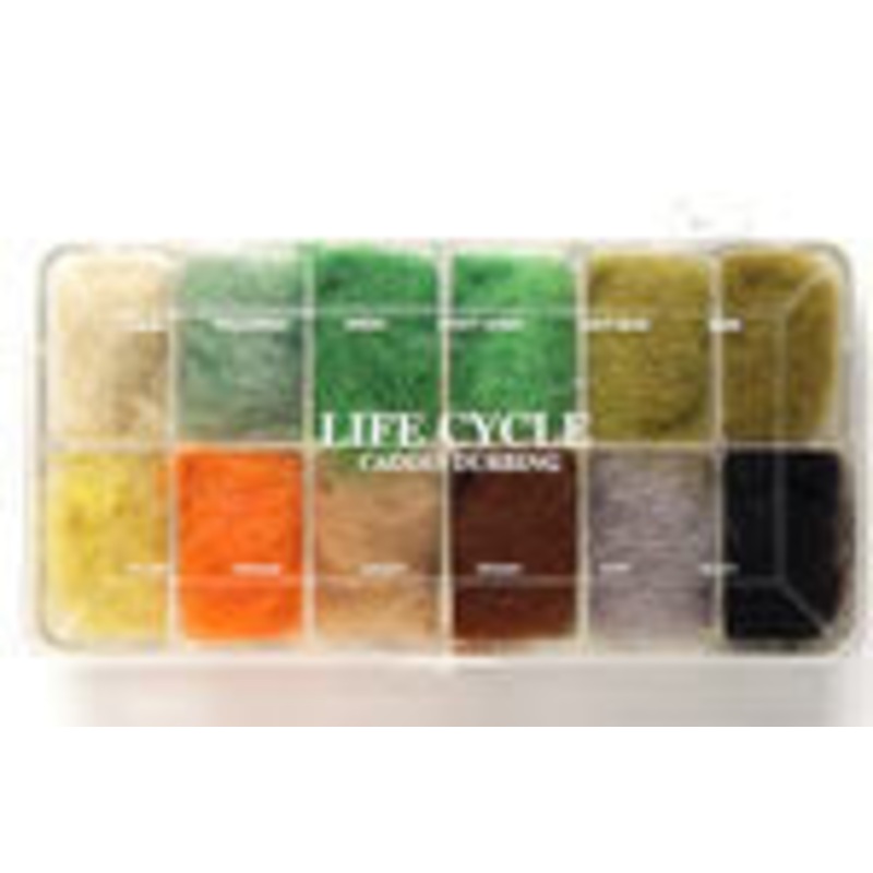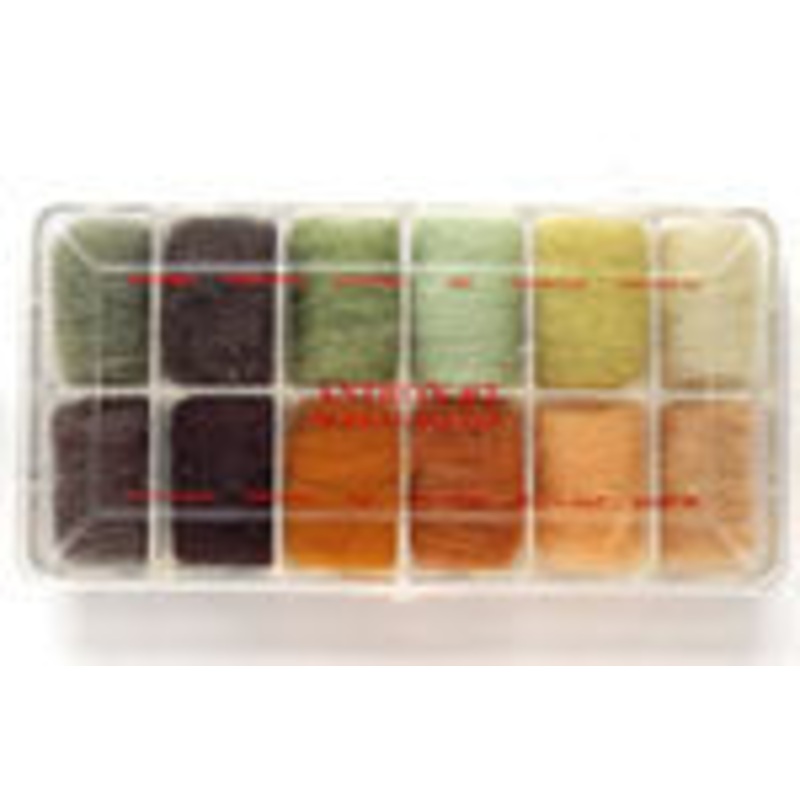 12 colors of dubbing in a well organized dispensing box. If want something easy or just aren’t sure what colors to choose, get a dispenser. Can be easily refilled.