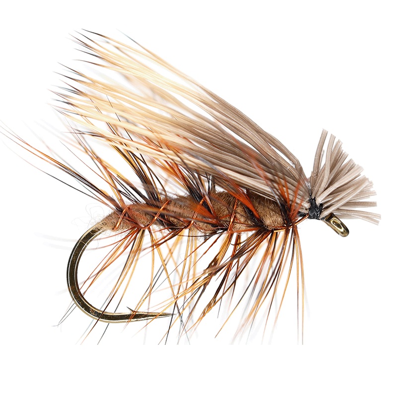 The Elk Hair Caddis is a go-to dry fly pattern that perfectly imitates adult caddisflies during hatch events. Its buoyant elk hair wing ensures excellent floatability, while the natural materials make it ideal for enticing trout in calm or fast-moving waters during caddis hatches.