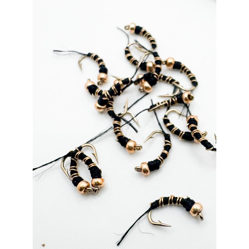Feedinator was created by Patrick Ard of Fish Story Guide Service, a local guide with 19 years of guiding experience in the Pittsburg and central New Hampshire region. The feedinator is a must have wherever midges are present. Tied on a size 16 Scud hook and available in olive, black or red.