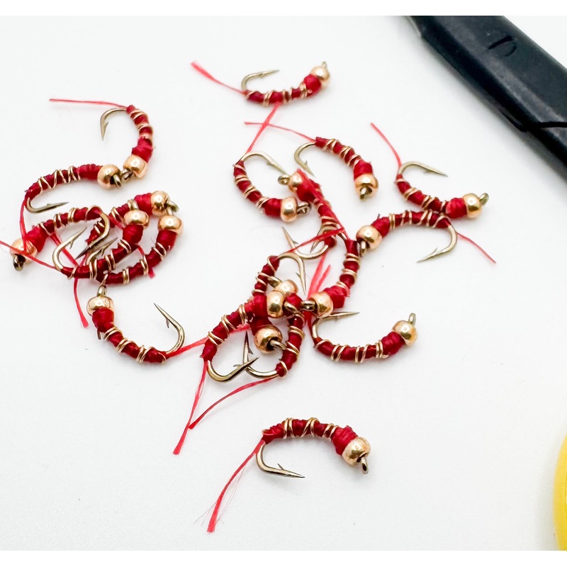 Feedinator was created by Patrick Ard of Fish Story Guide Service, a local guide with 19 years of guiding experience in the Pittsburg and central New Hampshire region. The feedinator is a must have wherever midges are present. Tied on a size 16 Scud hook and available in olive, black or red.