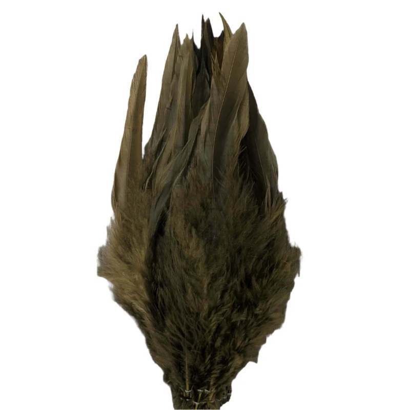 This is Natures Spirit selection of strung natural brown saddle hackle. They come in colors that are dyed over the natural brown saddles, giving a different look to the these base colors. Each 1/8 ounce package contains a variety of 6-8 feathers that are perfect for palmering up bodies on your favorite streamer patterns.
