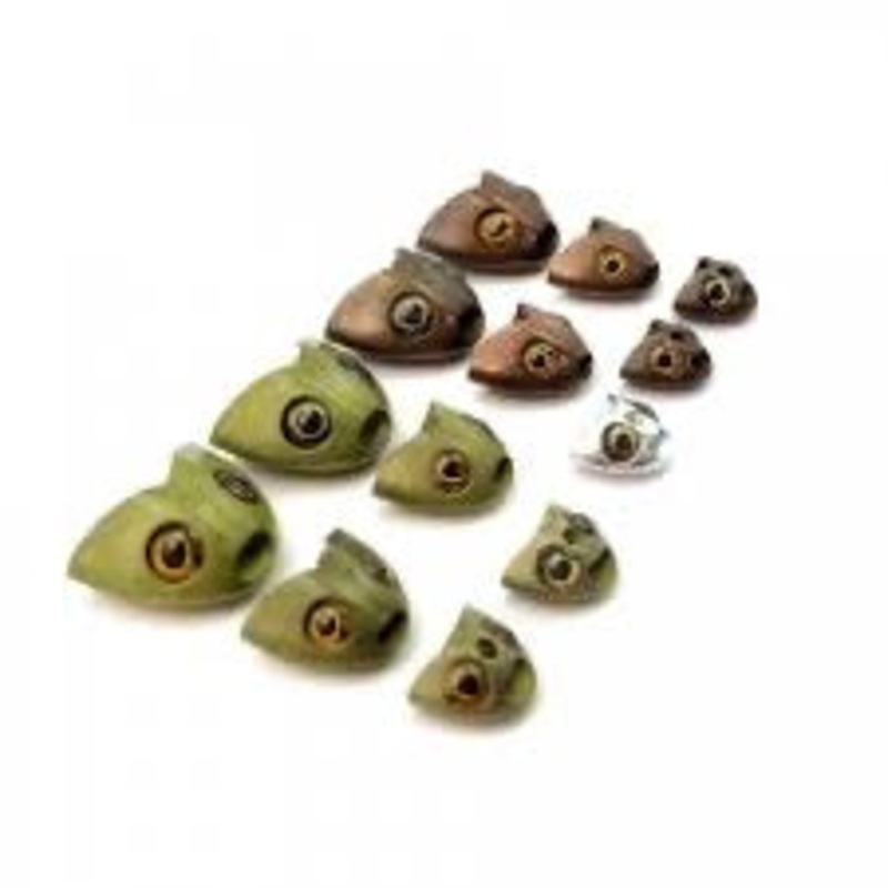 Tie heavyweight streamers with realistic, flat and broad profiles; the perfect imitation forcommon bottom-dwelling fish species such as sculpins, gobies and baby catfish. Designed for use on both hook and tube streamers, the Sculpin Helmet has a weighted keel to keep your streamer swimming hook-up and avoid snagging.