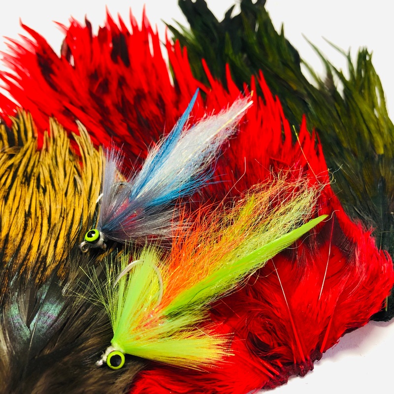 AA grade Indian cock saddle patches. Many natural variants and dyed colours.