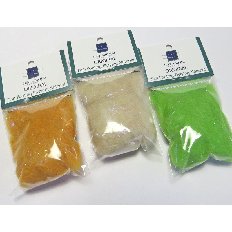 Quality Fishient Group Hares Blend Dubbing with the inclusion of flash for better colors and contrast, the additional of flash makes the fly more attractive to fish and consequently, the catch.