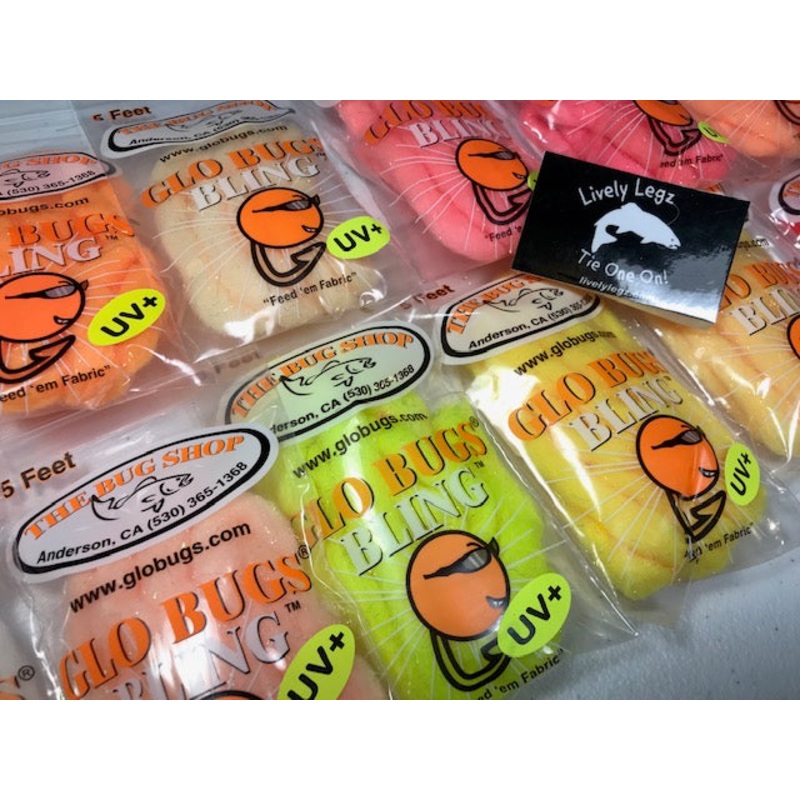 Looking for something new to add to your arsenal? Here it is!Glo Bugs Bling! Its HOT! Its our yarn with an absolute explosion of FLASH! Use it forGlo Bugs,add it to your favorite fly, conceal your hook, and use it for dubbing! It holds scent great! Your imagination is the limit! Ask for it at your favorite sporting goods retailer. Not there yet? You can order it directly from our online store! There is 5 feet per bag and the diameter of the yarn is approximately 5/16 of an inch or 8 mm.