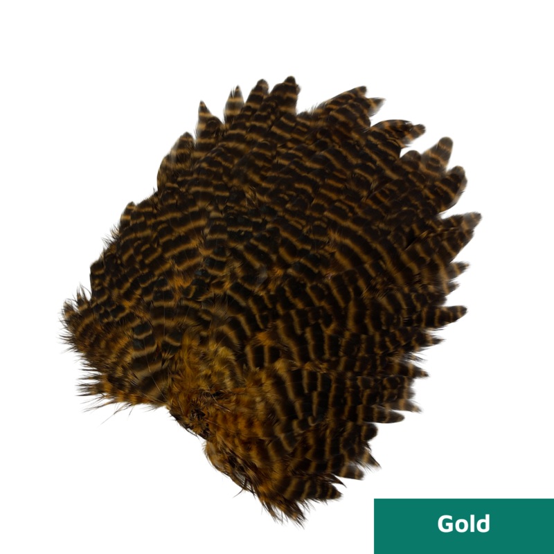 These Grizzly Hen saddles are great for nymph collars, legs and tails, saltwater flies, steelhead flies, as well as paired tails for poppers & bass bugs. The best Matuka feather on the skin. This one is a high quality genetic soft hackle.