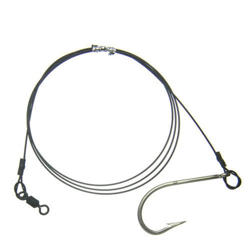 A wire shark trace is an important rig to have on hand when fishing with berley. The Halco wire Shark Trace is tough and ready to go, simply tie the rolling swivel to your line and add bait to the Mustad hook. This Halco trace is designed for speed, so you can get your bait out in no time to catch species such asDusky Sharks, Bronze Whalers, Bull Sharks and Tiger Sharks.