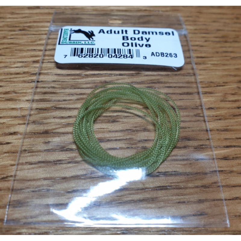 Adult Damsel Body material comes in sections of approximately 3 feet in length. From Hareline Dubbin, Adult Damsel Body is available in a number of colours and two sizes.